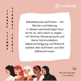 In einer Welt, die von Kommunikation geprägt ist, ist es wichtiger denn je, mit einer klaren Stimme und starkem Auftreten zu überzeugen. Im Projekt „Starke Stimme, Starkes Selbst“ stärken wir gemeinsam mit den Teilnehmenden ihre rhetorischen Fähigkeiten, Selbstwirksamkeit und Selbstverteidigung.